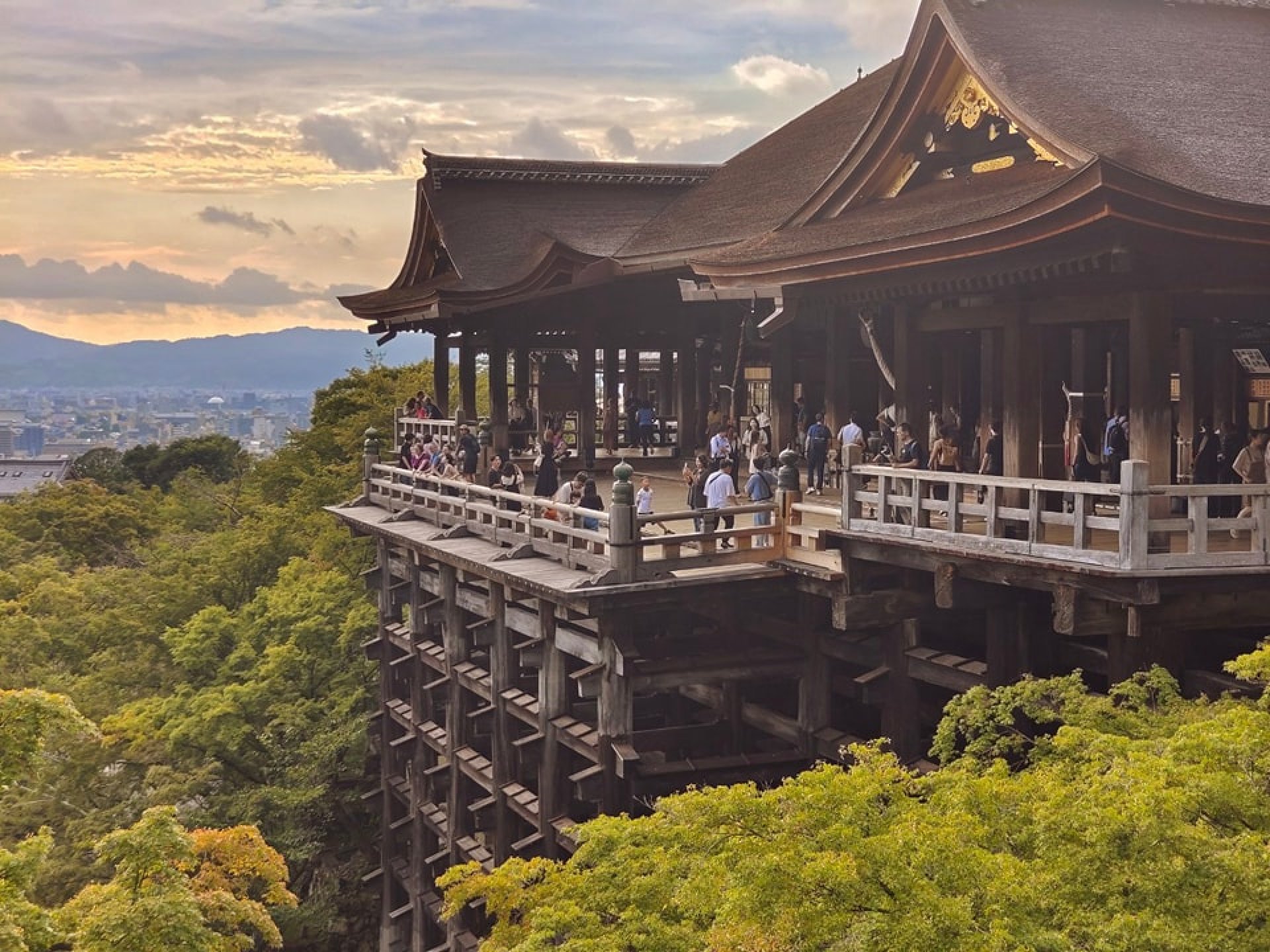 ใครมาเกียวโตต้องพาเด็กๆ ไปวัดคิโยมิซุ แม่จุ๊บเล่าให้เด็กๆฟังว่า คนญี่ปุ่นชำนาญเรื่องงานไม้มาก และที่วัดโบราณส่วนใหญ่จะใช้ภูมิปัญญาการก่อสร้างด้วยไม้แบบไม่ใช้ตะปู ความยากคือที่นี่เป็นวัดขนาดใหญ่ที่ตั้งอยู่บนเนินเขาสูง ซึ่งทำออกมาได้แข็งแรง นอกจากนี้ วัดนี้ยังมีจุดที่สามารถชมวิวได้อย่างสวยงามทุกฤดูกาล ต้นไม้สวยมาก แม่จุ๊บรู้สึกชอบความเข้ากันได้กับธรรมชาติอย่างลงตัวของวัดนี้ ตกหลุมหลงรักทุกทีที่มาเกียวโต