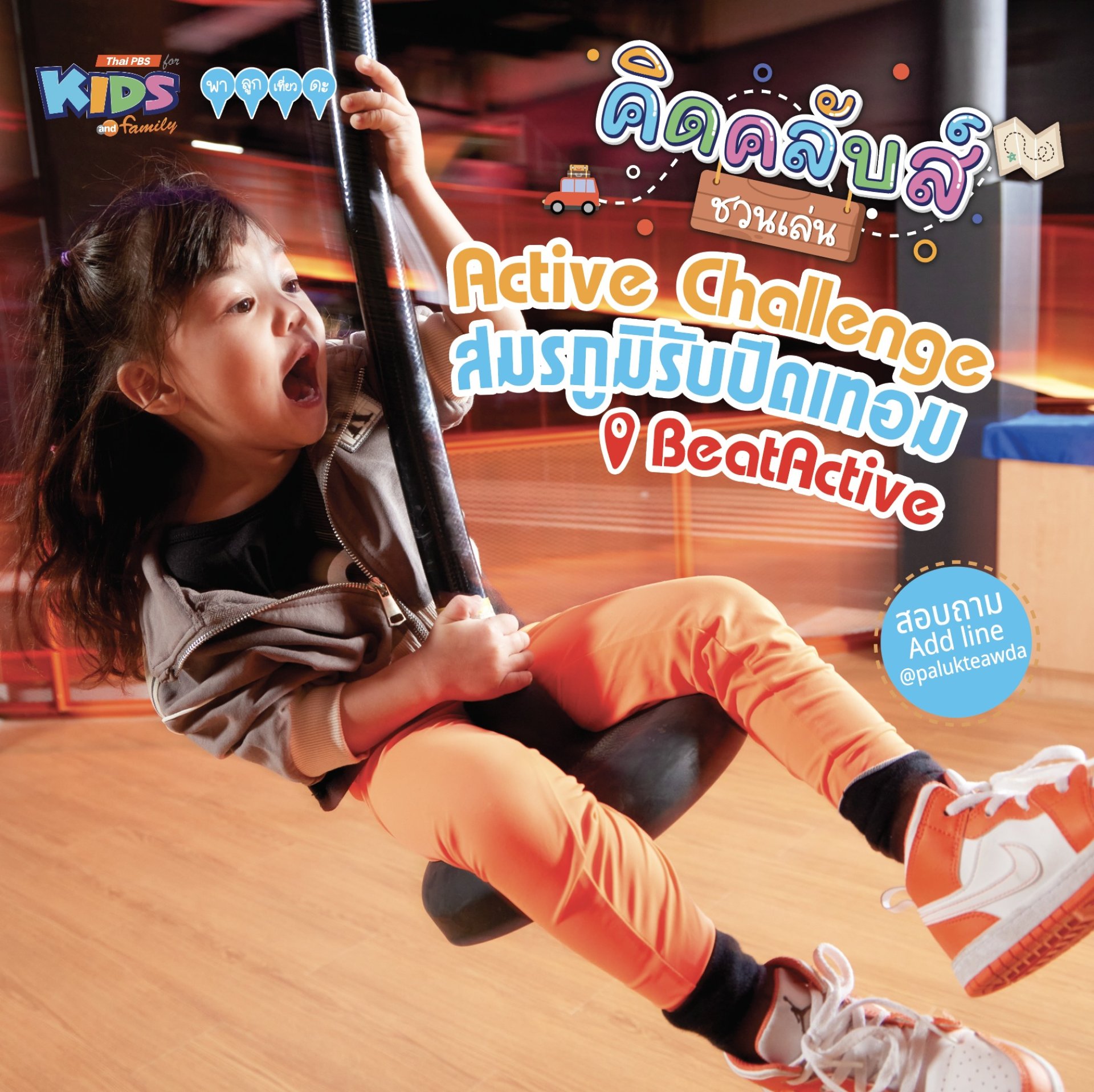 Thai PBS Kids ร่วมกับ พาลูกเที่ยวดะชวนเด็กๆพลังสูง มาปล่อยพลังรับปิดเทอมกับกิจกรรม คิดส์คลับชวนเล่น ตอน Active Challenge สมรภูมิรับปิดเทอม @BEAT Active กิจกรรม One Day Trip กับการแบ่งทีมแข่งขัน 5 ฐานกิจกรรม เพื่อค้นหา ทีมเด็กแกร่ง และสุดมันส์ ! กับกิจกรรมอีกกว่า 50 ฐาน เพื่อเสริมสร้างพัฒนาการอย่างรอบด้านด้วยการเล่น
