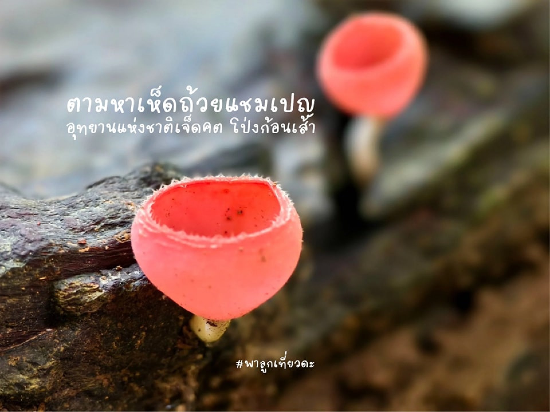 เส้นทางตามหาเห็ดถ้วยแชมเปญสีแดงสดใส สีสันของป่าหน้าฝนที่ #น้ำตกเจ็ดคต โป่งก้อนเส้า เป็นเส้นทางเดินป่าแบบชิลๆ สบายๆ ใกล้กรุงเทพฯ