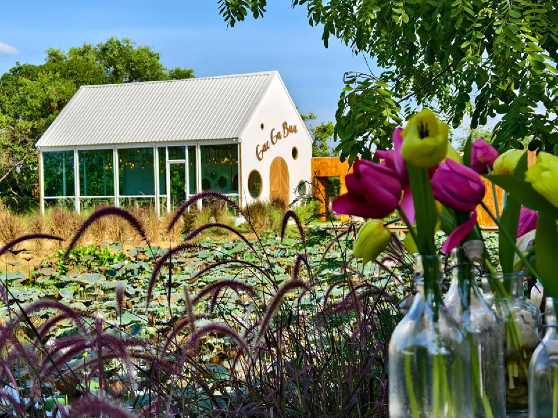 - รอบพื้นที่จะเป็นสระบัว มีทั้งโซนห้องแอร์ และโซนoutdoor นั่งชมบัวและสวนดอกไม้ได้